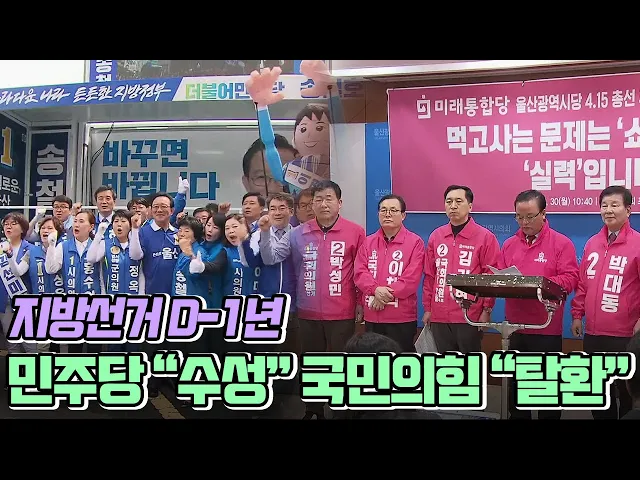 ◀ANC▶ 8대 지방선거가 이제 1년 앞으로 다가왔습니다. 지난 선거에서는 더불어민주당이 돌풍을 일으켰지만 이번에는 결과를 장담하기 어려운 상황입니다. 당장 다음(이번) 달 열리는 국민의힘 당대표 선거를 비롯해 남아 있는 변수가 적지 않습니다. 유희정 기자. ◀END▶ ◀VCR▶ 울산의 2018년 7대 지방선거는 더불...