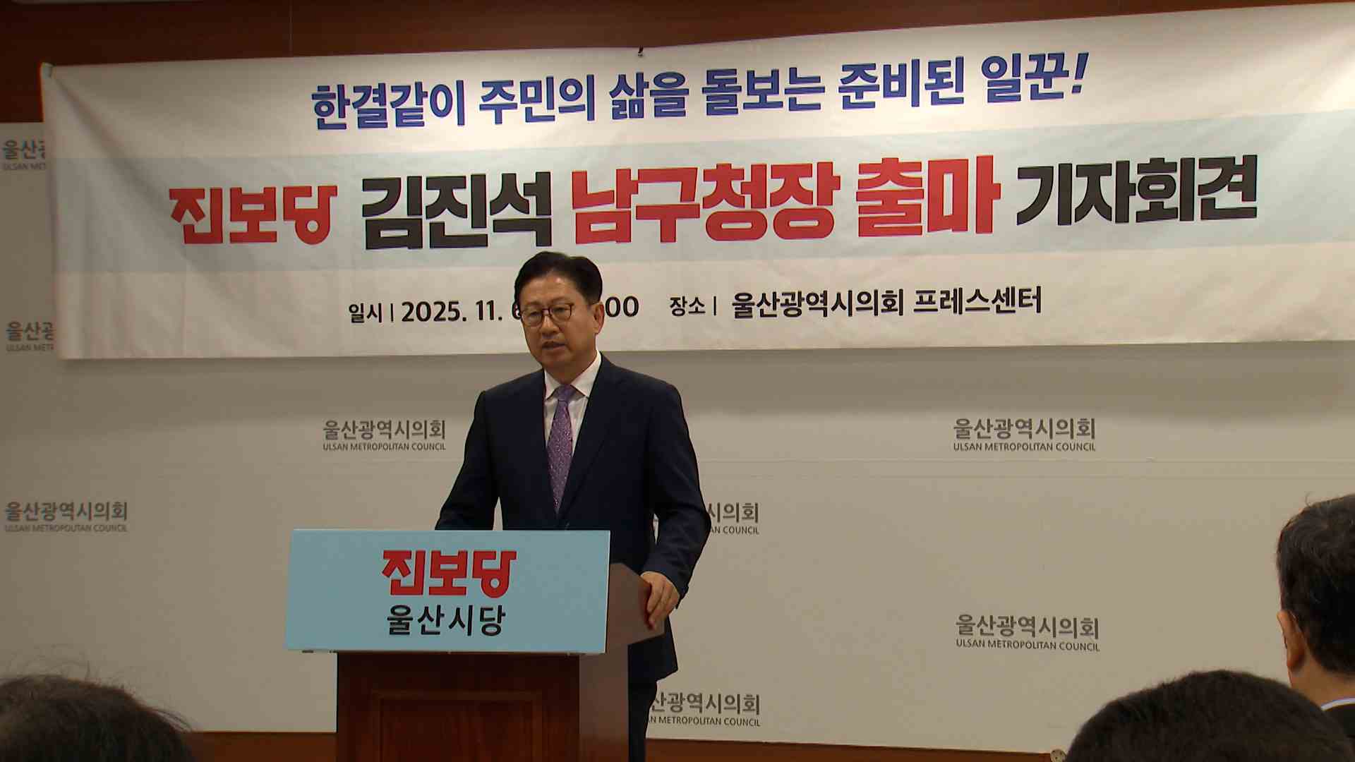 진보당 김진석 남구지역위원장은 오늘(11/6) 내년 지방선거 남구청장 출마를 선언했습니다. 김 위원장은 어려운 시기에도 진보정당의 깃발을 지켜왔다며 7번째 남구청장 도전인 내년에는 남구의 새시대를 열겠다고 밝혔습니다. 또 새로운 남구를 바라는 남구 주민과 진보민주세력의 힘을 하나로 모으겠다고 강조했습니다.