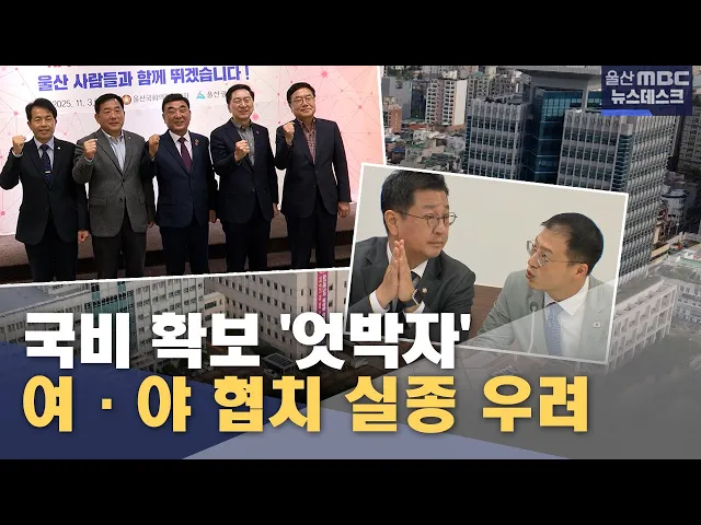 울산시 주요 사업 예산 확보 방안을 협의하는 울산시와 지역 국회의원의 예산정책협의회에 더불어민주당 의원들은 참석하지 않기로 했습니다. 김태선 민주당 울산시당위원장은 민주당이 제안한 예산정책협의회를 김두겸 시장이 먼저 거부했다며 집권 여당에 대한 존중이 없다고 지적했습니다. 이에 대해 울산시는 지역 국회...