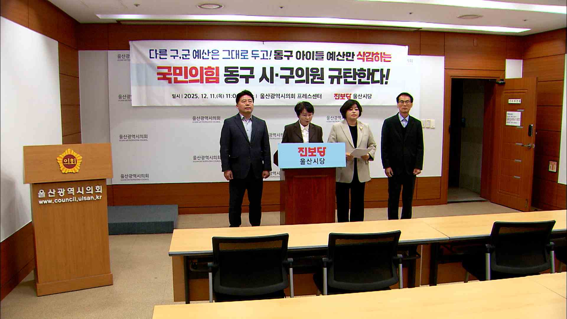 진보당 울산시당은 오늘(12/11) 기자회견을 열고 내년도 동구 교육 예산 삭감액을 원상 복구하라고 주장했습니다.진보당은 울산시의회 교육위원회가 다른 구군은 그대로 두고 동구 예산 2억 원 가운데 1억 원을 삭감했다며, 이를 주도한 국민의힘 소속 시·구의원들의 공개 사과를 요구했습니다.앞서 교육위원회는 '학교로 ...