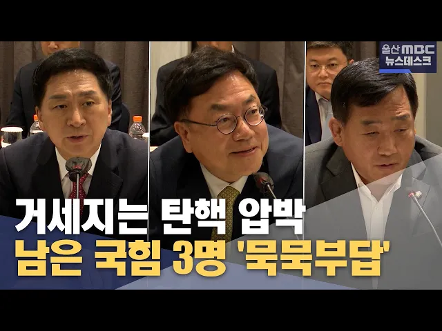 ◀ 앵 커 ▶ 비상계엄은 야당의 탓이고, 나는 잘못이 없으니 끝까지 대통령 자리를 지키겠다. 윤석열 대통령의 이 같은 담화 이후 정치권의 반발은 더 거세졌고, 탄핵에 찬성한다는 국민의힘 의원도 7명까지 늘어났습니다. 하지만 울산지역 국민의힘 국회의원 3명은 여전히 아무런 입장을 내놓지 않고 있습니다. 유희정 기자....