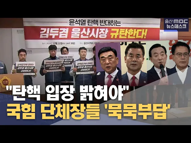 [앵 커] 오는 14일 윤석열 대통령에 대한 2차 탄핵소추안 표결을 앞둔 가운데, 자치단체장들도 탄핵에 대한 입장을 밝히라는 목소리가 거세지고 있습니다. 그렇지만 이 같은 요구에 대해 울산의 국민의힘 소속 지자체장들은 묵묵부답으로 대응하고 있습니다. 유영재 기자 [ 리포트 ] 전국공무원노동조합 울산지역본부는 김...