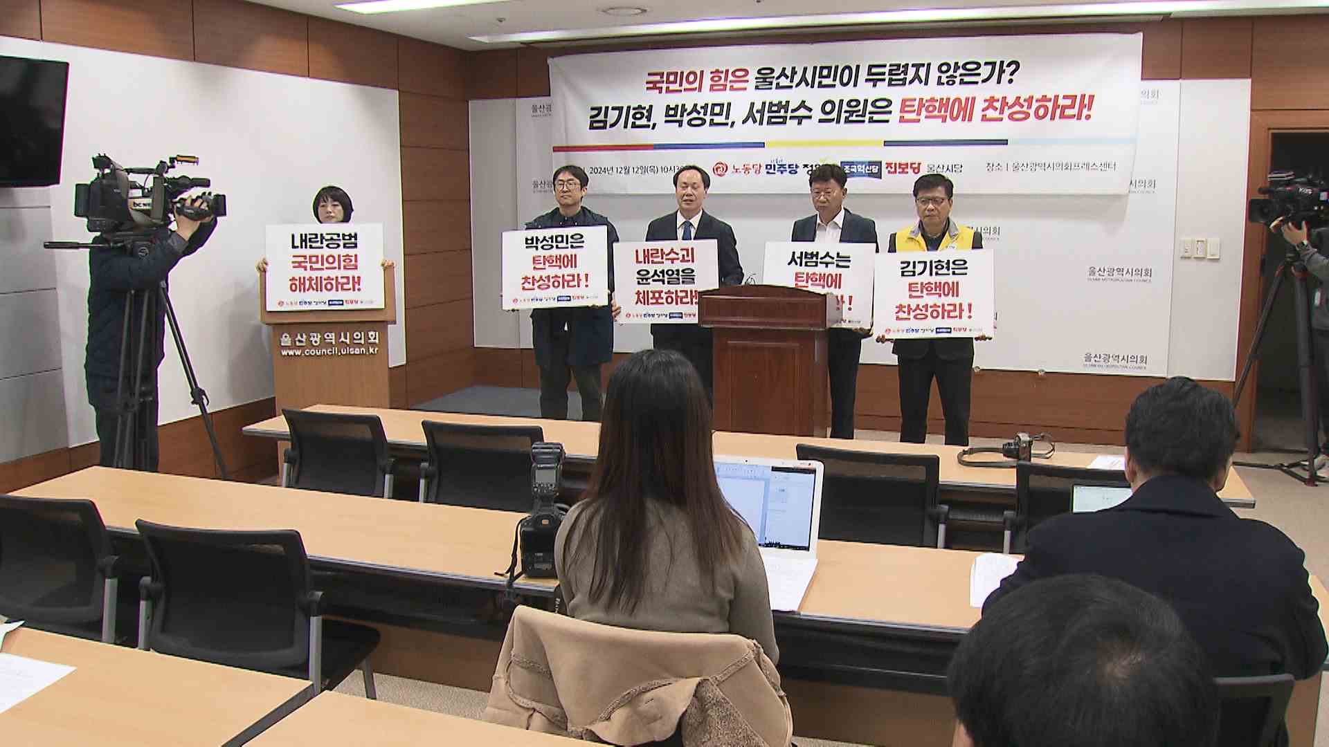 윤석열 대통령 담화가 발표된 가운데 대통령 탄핵을 촉구하는 요구가 더 커지고 있습니다. 더불어민주당과 노동당, 정의당, 조국혁신당, 진보당 울산시당은 오늘(12/12) 기자회견을 열고 지역 국회의원들이 대통령 탄핵에 동참하라고 요구했습니다. 이들은 대통령이 국민들이 납득할 수 없는 담화를 발표했다며 국회의원들...