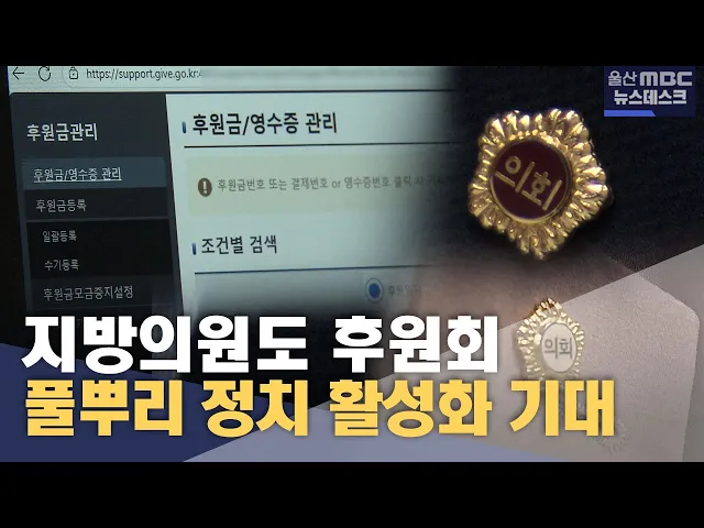 [앵 커] 법이 개정되며 지난해부터 지방의원들도 후원회를 조직할 수 있게 됐습니다. 현재 울산에는 6명의 지방의원이 후원회를 개설했는데, 풀뿌리 정치를 활성화 시키는 계기가 될 지 주목됩니다. 조창래 기자가 취재했습니다. [리포트] 동구 남목동을 지역구로 둔 국민의힘 강대길 시의원은 지난해 9월 후원회 등록을 마...