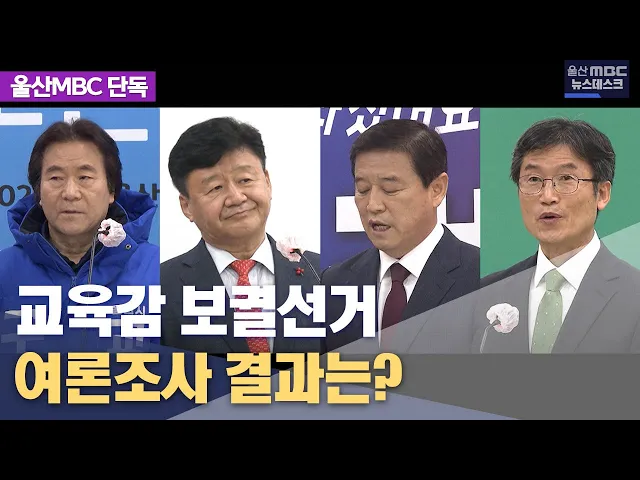 [앵커]4월5일 치러지는 울산시교육감 보궐선거를 앞두고 울산MBC가 단독으로 여론조사를 실시했습니다. 고 노옥희 교육감의 남편인 천창수씨가 1위로 집계됐습니다. 먼저 홍상순 기자가 보도합니다. [리포트]교육감 예비 후보 중에 누가 가장 낫다고 생각하는지 물었습니다. 천창수 노옥희재단추진위원회 공동대표 40.1%, ...