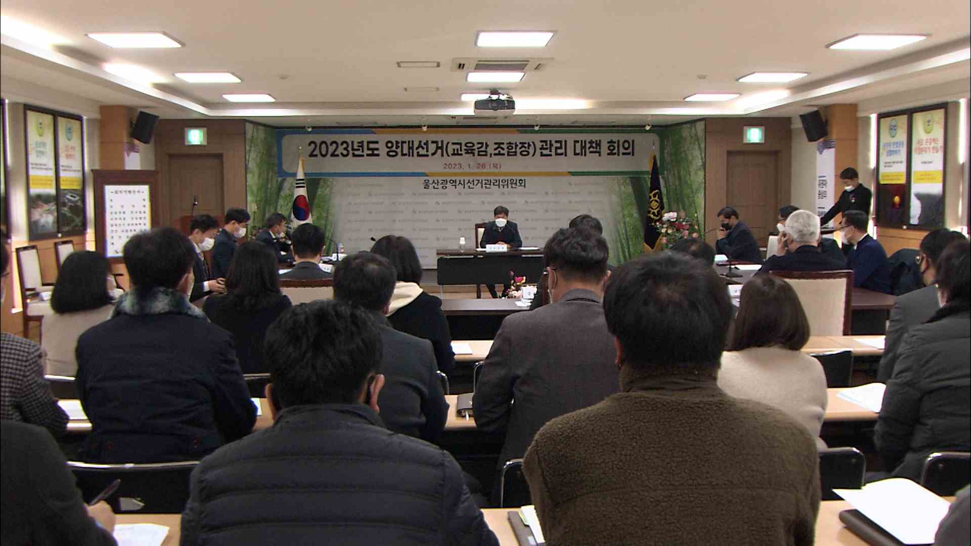 울산시선거관리위원회는 오늘(1/26) 올해 치러질 교육감 선거와 조합장 선거 관리 대책 회의를 개최했습니다. 시선관위와 구군 선관위는 불법 선거운동을 예방하기 위한 대책과 지도 단속 방안 등을 논의하고 특히 교육감 선거의 투표율을 높이기 위한 대책을 마련해 추진하기로 했습니다. 울산시교육감 선거는 오는 4월 5...