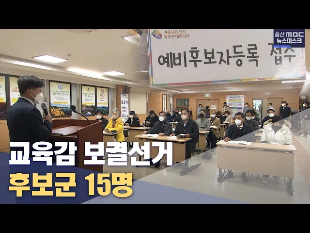 [앵커] 울산시 선관위가 내년 4월 5일 치러지는 울산시교육감 보궐선거를 앞두고 오늘 출마 예정자 대상 설명회를 열었습니다. 선거가 넉달도 채 남지 않은 가운데 이름을 올린 후보만 15명에 이르러 치열한 선거전을 예고했습니다. 최지호 기자입니다.[리포트] 노옥희 교육감의 갑작스런 별세로 치러지는 울산시교육감 보...