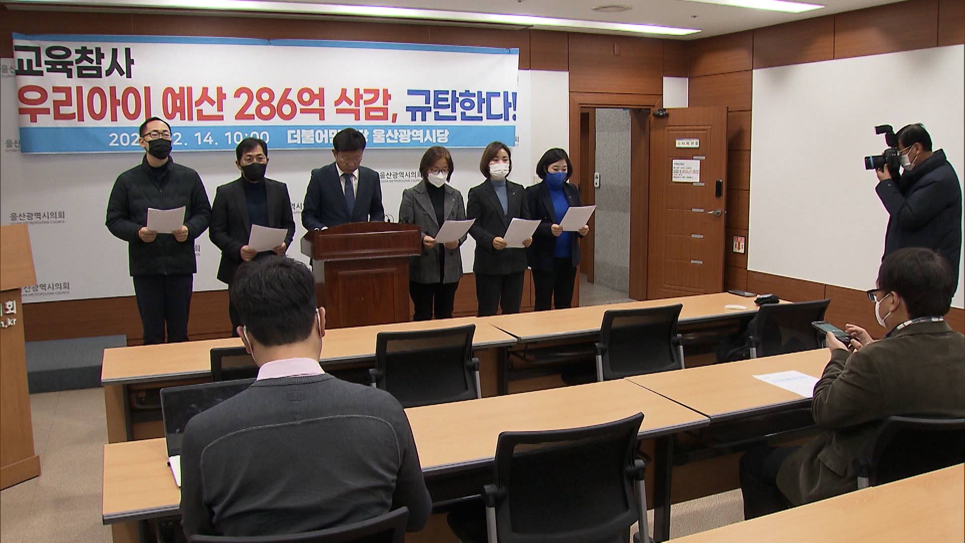 민주당 울산시당이 오늘(12/14) 내년도 시교육청 예산 286억여 원을 삭감한 울산시의회는 다수당 갑질을 중단하라고 주장했습니다. 민주당은 시의회가 학생교육원 제주분원 설립과 동해분교 독서체험관 건립 예산 230여억 원을 전액 삭감하고 민주시민, 통일, 생태환경, 노동인권, 성교육 예산 등을 대부분 삭감한 건 고 노...