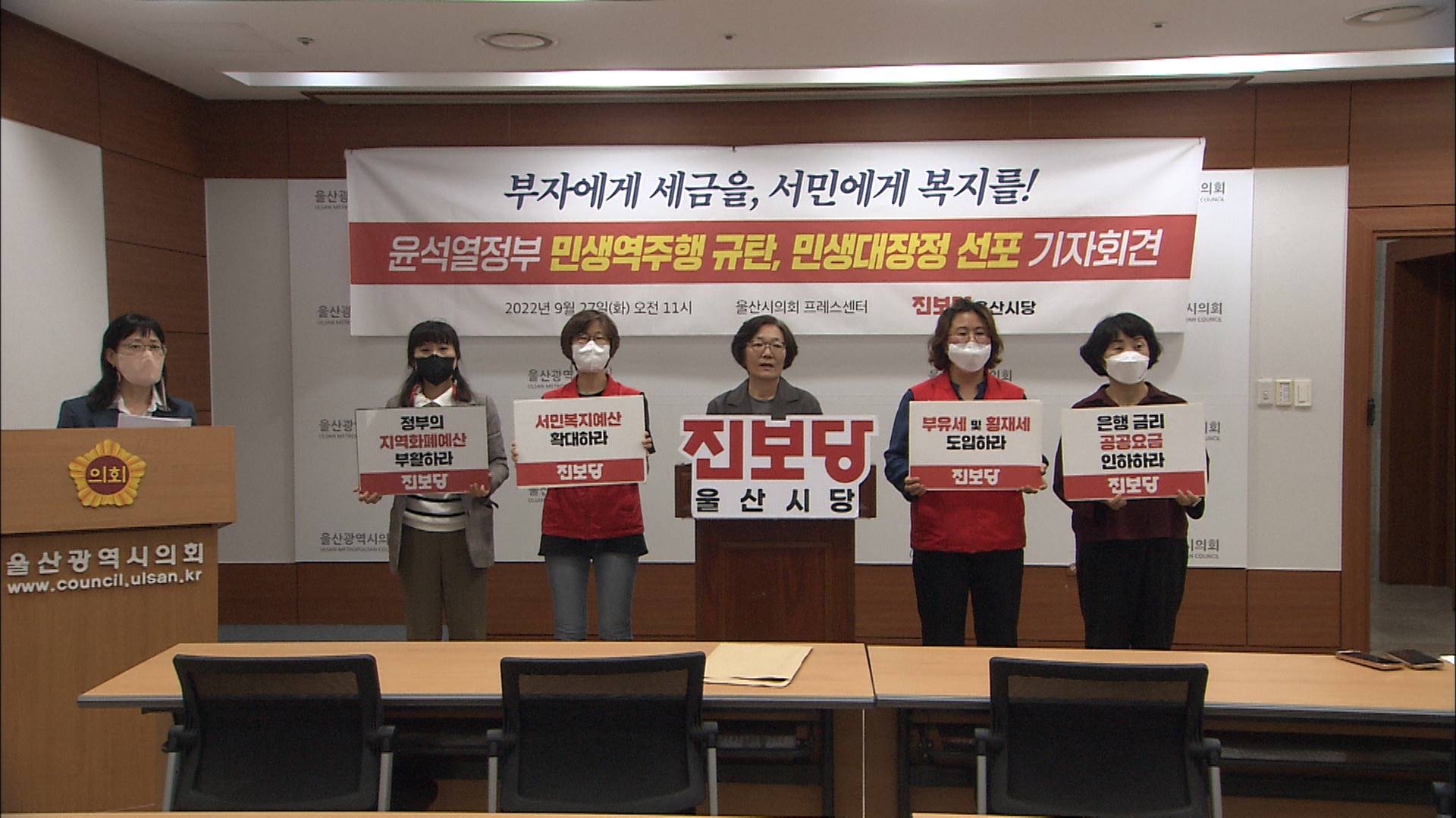 진보당 울산시당 오늘(9/27) 울산시의회에서 기자회견을 열고 소상공인과 노동자, 시민을 위한 복지 예산을 확대해야 한다고 주장했습니다. 진보당은 정부가 울산페이 등 지역화폐 예산을 삭감하고, 공공요금과 금리 등 물가 상승을 방관하고 있다며 막대한 이자 수익을 올리고 있는 재벌과 대기업으로부터 걷은 세금을 민...
