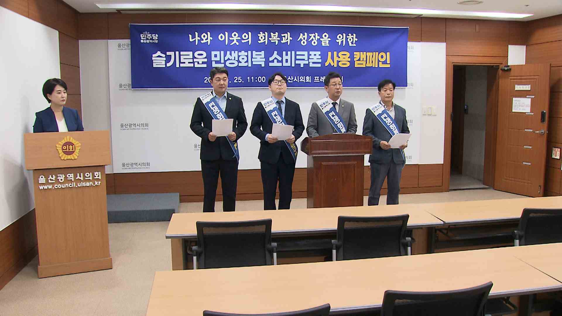 더불어민주당 울산시당은 오늘(7/25) 기자회견을 열고 민생회복 소비쿠폰 소비 현장에서 다양한 의견을 듣고 정부에 전달하겠다고 밝혔습니다. 민주당은 "소비쿠폰은 포퓰리즘이 아닌 회복과 성장의 마중물"이라며 미비점은 2차 지급 때 보완하도록 노력하겠다고 덧붙였습니다. 오늘로 신청 첫 주가 지나는 소비쿠폰은 요일...