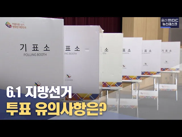 [앵커]제8회 전국동시지방선거가 이틀 앞으로 다가왔습니다. 울산 281개 투표소에서 실시되는 이번 선거는 1인당 투표용지가 최대 7장에 달하는데요. 이용주 기자가 지방선거 투표 시 유의사항을 정리해 봤습니다. [리포트] 지난주 이틀간 치러졌던 울산지역 지방선거 사전투표율이 전국 평균에도 못 미치면서 본선거에 관...