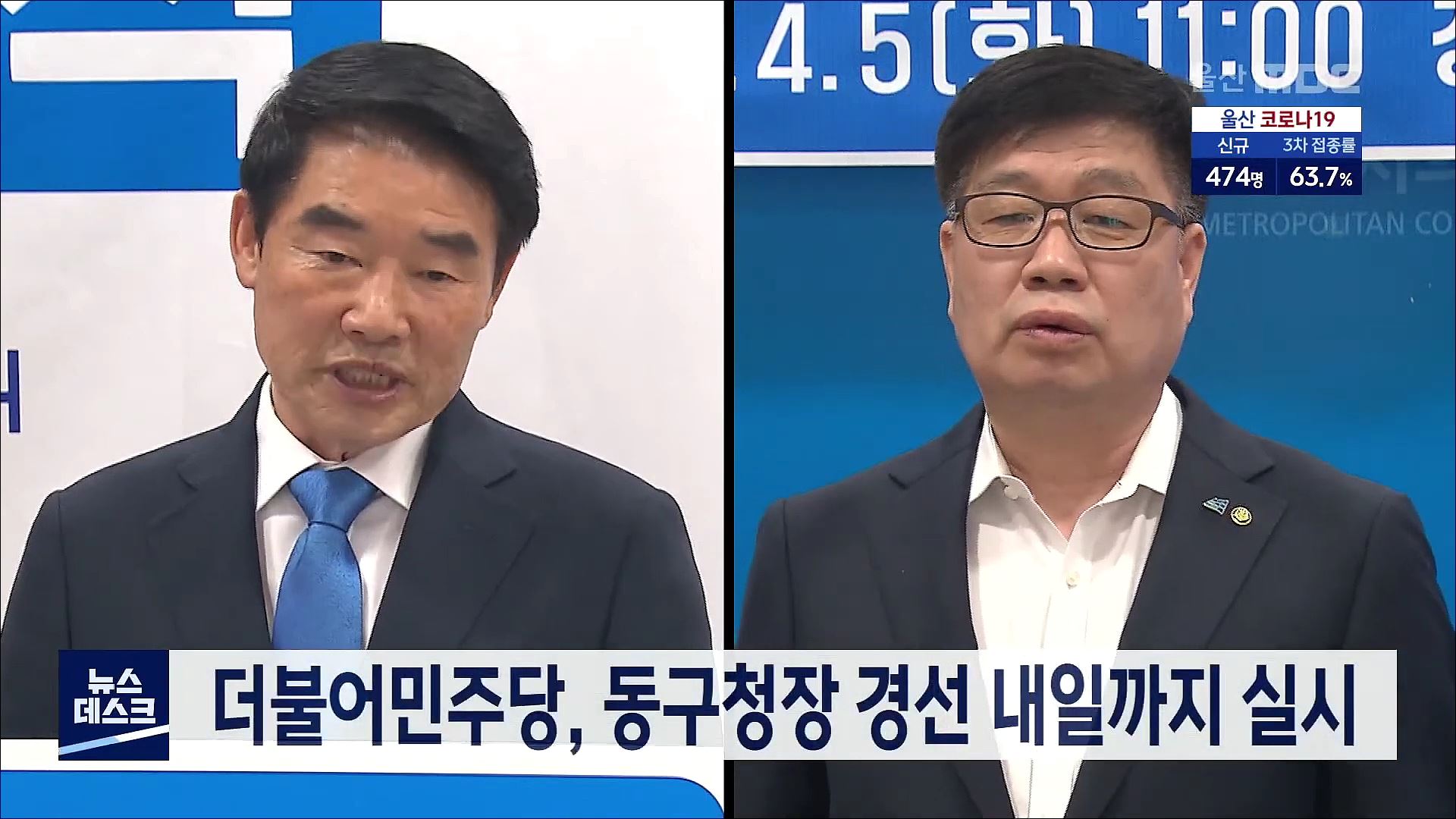 울산시장에 이어 중구청장 후보가 확정되면서 동구청장을 제외한 광역, 기초단체장 지방선거 후보가 확정됐습니다. 더불어민주당은 황보상준 후보의 재심 요청을 받아들여 정천석 후보와 오는 8일과 9일 경선을 치러 10일 동구청장 후보를 발표할 계획입니다. 국민의힘은 어제와 오늘(5/6) 천기옥 후보와 손삼호 후보의 여...