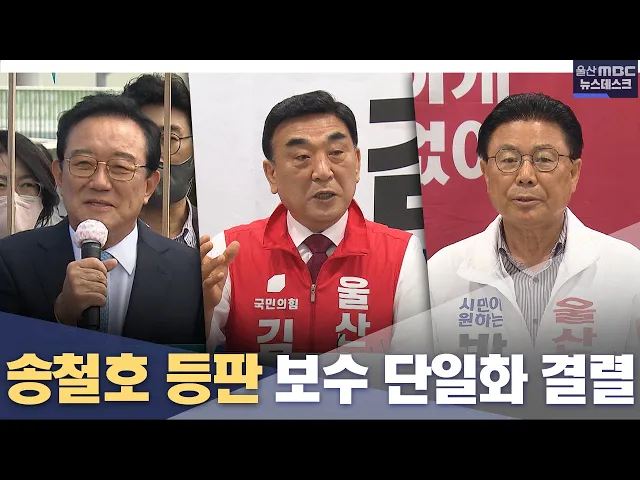 앵커 │ 송철호 시장이 공식적으로 출마를 선언하고 재선 도전에 나섰습니다. 울산 첫 민주당 재선 시장이 될 지 관심이 뜨거운 가운데, 아직까지 마무리되지 않고 있는 보수 단일화 이슈도 선거판을 달구고 있습니다. 최지호 기자. 리포트 │ 송철호 울산시장은 재선 도전 출마 선언 장소로 태화강역을 택했습니다. 태화강역...