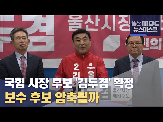 김두겸 전 남구청장이 국민의힘 울산시장 경선에서 1위를 차지하며 최종 후보로 확정됐습니다. 국민의힘은 시민과 당원 각각 50% 비율로 여론조사를 실시한 결과 김두겸 후보가 38%, 정갑윤 후보가 33%, 서범수 후보가 27%의 득표율을 기록했다고 밝혔습니다. 김두겸 후보가 승리한 원동력은 이채익 의원이 지지를 선언하며...