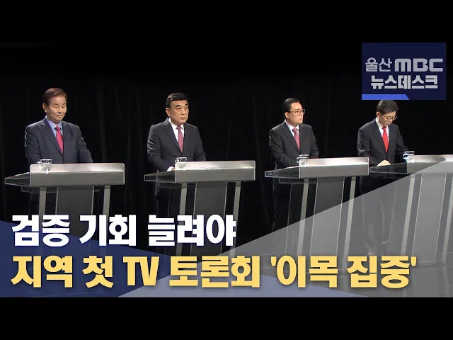 앵커 │ 6.1 지방선거를 앞두고 지역에서 첫 TV 토론회가 마련돼 정가의 이목이 쏠렸습니다. 울산시장에 도전하는 국민의힘 예비주자 7명 가운데 4명이 참석해 열띤 공방을 벌였는데, TV 토론이 어떤 변수가 될 것인지 관심이 모아지고 있습니다. 최지호 기자. 리포트 │ 울산시장에 7명이 출사표를 낸 국민의힘. 현역인 이채...