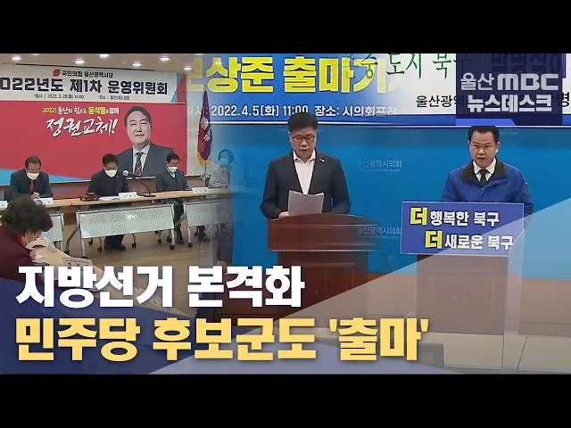 앵커 │ 대선 패배 이후 잠잠하던 더불어민주당이 지방선거에 본격적으로 뛰어들기 시작했습니다. 국민의 힘이 이미 치열한 내부 경쟁을 벌이고 있는 가운데, 뒤바뀐 여야의 지방선거 대진표도 조만간 윤곽을 드러낼 것으로 보입니다. 최지호 기자.리포트 │ 울산시의회 박병석 의장이 북구청장 도전 의사를 공식적으로 밝혔...