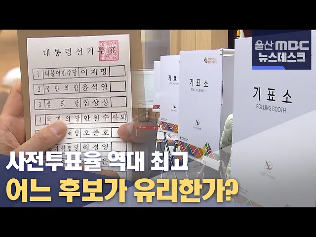 앵커 │ 울산지역 대선 사전투표율이 역대 가장 높은 35%대에 달하며 초박빙 선거전 열기가 반영됐는데요. 여야 모두 높은 사전투표율이 유리할 것으로 분석하는 가운데, 막판 세몰이에 총력을 기울이고 있습니다. 최지호 기자.리포트 │ 지난 4~5일 치러진 대통령선거 사전투표에 참여한 울산 유권자는 33만2천600명. 전체 ...