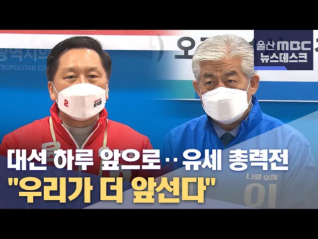 앵커 │ 대통령선거 선거운동 마지막날인 오늘(3/8) 울산에서도 각 정당들이 막판 총력 유세를 벌였습니다. 더불어민주당과 국민의힘은 투표율이 높을수록 대선 공약 실현 가능성이 높다며 한목소리를 내면서도, 선거 결과에 대해서는 서로 비교 우위에 있다고 내다봤습니다. 최지호 기자. 리포트 │ 더불어민주당 울산시당은...