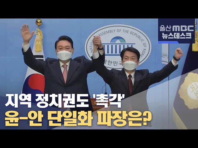 앵커 │ 국민의힘 윤석열 후보와 국민의당 안철수 후보 단일화 합의가 울산에서도 이번 대선의 최대 변수가 되고 있습니다. 국민의힘은 이번 단일화로 울산에서 역대 가장 높은 지지율이 나올 것으로, 다른 정당들은 단일화 효과가 미미할 것으로 엇갈린 전망을 내놨습니다. 최지호 기자. 리포트 │ 윤석열 후보와 안철수 후...