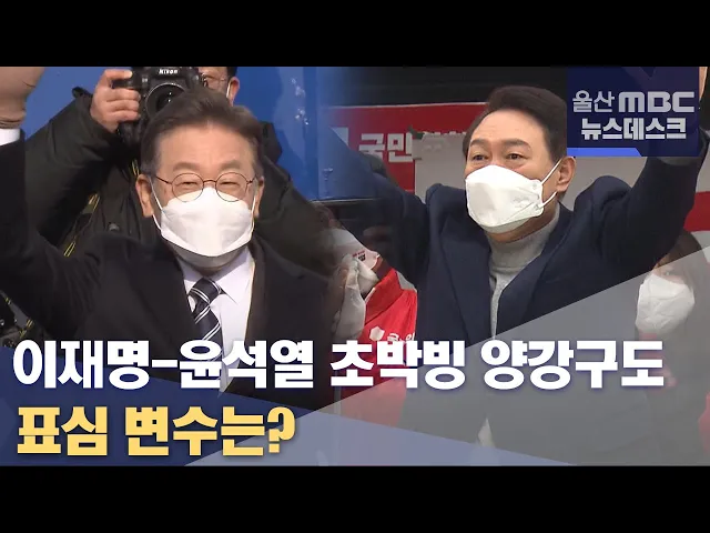 앵커| 제20대 대통령선거가 8일 앞으로 다가왔습니다. 지난 19대 대선과는 달리 거대 정당 후보 간 박빙의 승부가 예측되고 있는데요. 울산은 양당 정치를 견제하는 부동층과 진보 성향 노동자 표심이, 양강 구도에 얼마나 영향을 미칠지 관건입니다. 최지호 기자의 보도입니다. 리포트| 5년 전 19대 대선에 이어 20대 대...