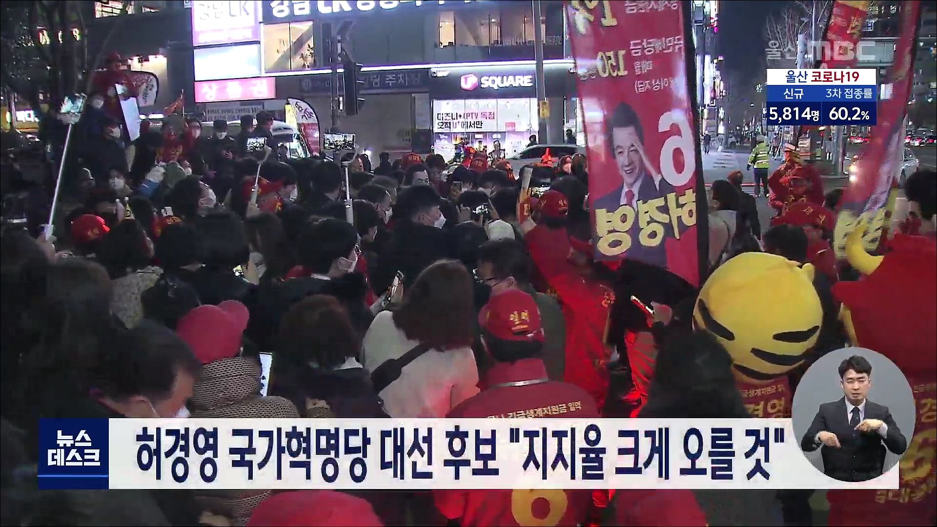 허경영 국가혁명당 대선 후보가 오늘(3/3) 울산을 방문해 기존 정당 정치를 비판하며, 기호 6번 지지를 호소했습니다. 허 후보는 윤석열, 안철수 단일화 효과로 국가혁명당 지지율이 10% 이상 오를 것이라며, 대통령이 되면 긴급생계지원금 1억 원 등 국민배당금 지원 약속을 꼭 지키겠다고 말했습니다.