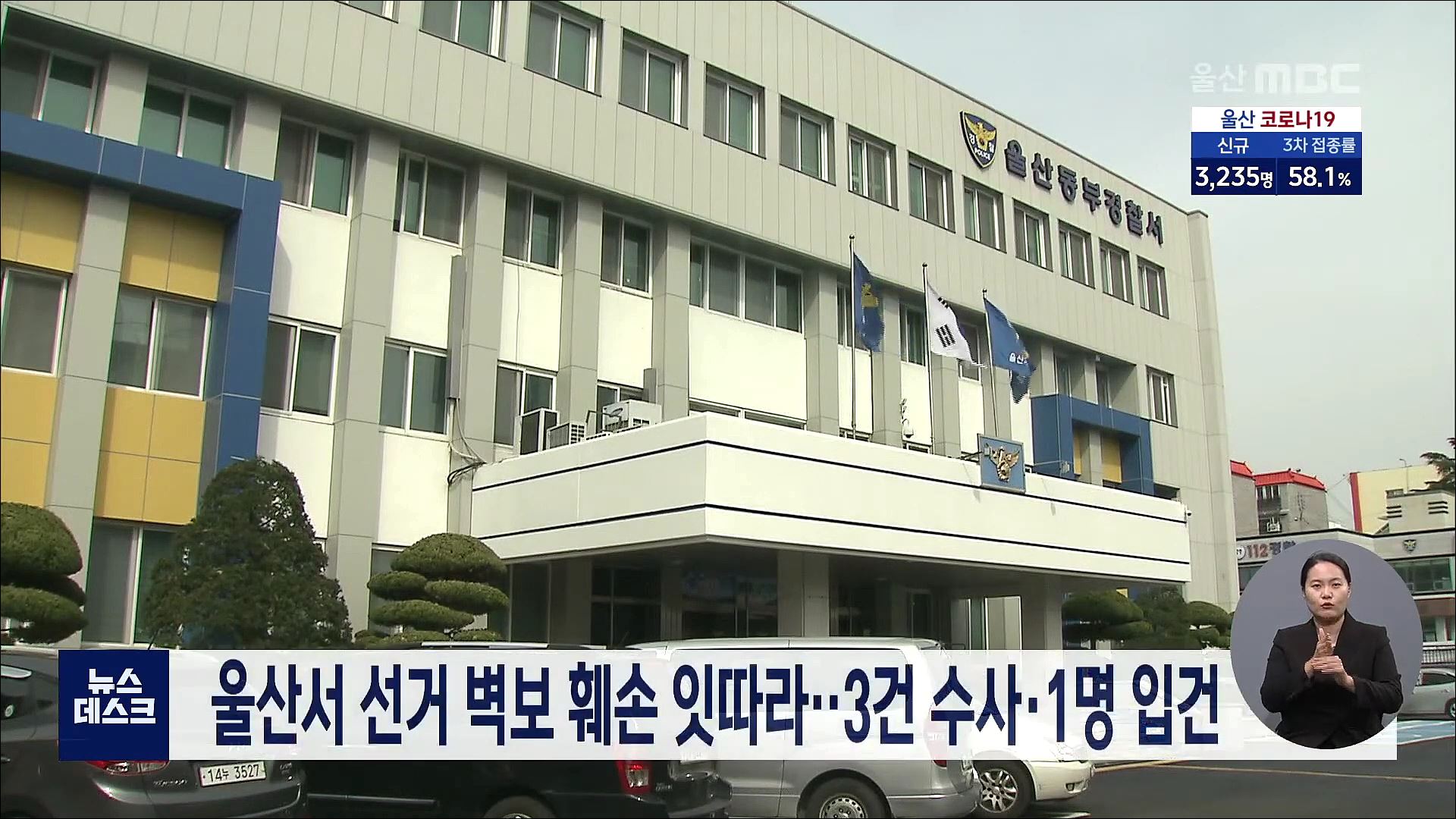 울산에서 제20대 대선 벽보가 잇따라 훼손돼 경찰이 수사를 벌이고 있습니다. 동부경찰서는 어제(2/22) 동구 아파트단지에 붙은 선거벽보에서 얼굴 부위 사진을 훼손한 혐의로 60대 남성 A씨를 입건했습니다. 같은 날 중구에서는 초등학교 인근에 부착된 벽보 일부가 불에 탔고, 지난 19일 울주군에서는 아파트단지에 붙어...