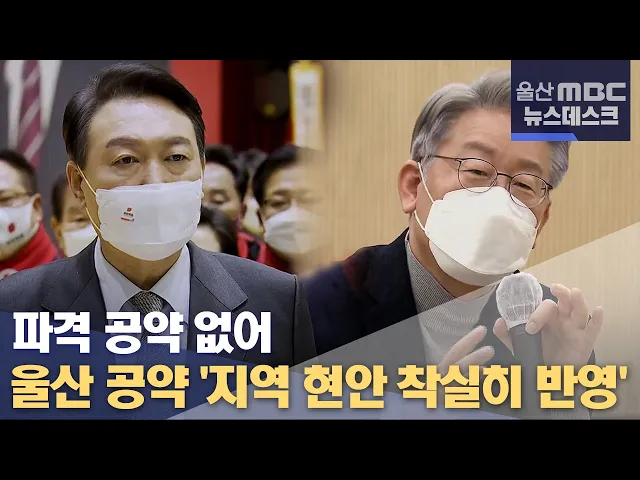 ◀ANC▶ 대선이 다가오면서 주요 정당 후보들이 울산지역 공약을 본격적으로 내놓고 있습니다. 각 후보들이 지역에서 요구해온 현안들을 착실히 공약에 반영하고 있다는 점은 공통적인데 반해, 기대했던 것만큼 파격적인 울산 공약은 등장하지 않고 있습니다. 유희정 기자 ◀END▶ ◀VCR▶ 국민의힘 윤석열 후보는 지역 ...