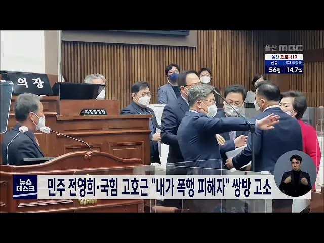 울산시의회 더불어민주당 소속 전영희 의원과 국민의힘 고호근 의원이 서로 상대에게 폭행을 당했다며 경찰에 고소했습니다. 전영희 의원은 고 의원이 시의회 지하주차장에서 자신을 서류뭉치로 내려치고 정례회 본회의장에서 자신을 떠밀었다고 주장했습니다. 고호근 의원은 오히려 민주당 시의원들이 자신을 에워싸고 폭...