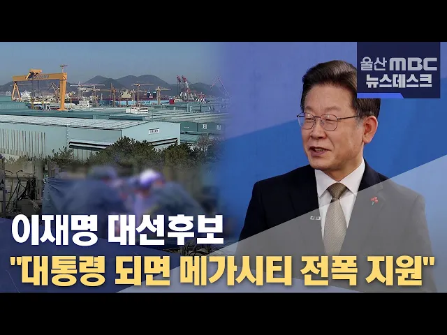 ◀ANC▶제20대 대선을 70여 일 앞두고부산·울산·경남MBC가 지역 방송 최초로더불어민주당 이재명 후보 편을 시작으로여야 대선후보 특집대담을 시작합니다.이 후보는 동남권 메가시티와 조선업 위기, 울산의료원 설립 등울산 주요 현안에 대한 생각을 밝혔습니다.이용주 기자.◀VCR▶대담 시간 60분의 대부분은부산·울산·...