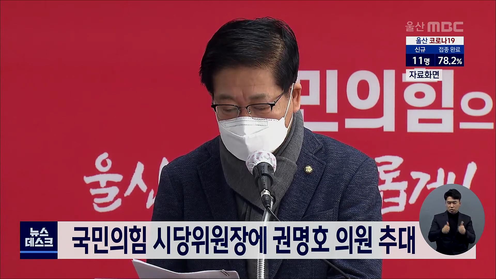 울산지역 국민의힘 소속 국회의원·당협위원장들은 오늘(12/6)일 국회에서 간담회를 갖고 박성민 의원의 당 조직부총장 발탁으로 공석이된 울산시당위원장에 권명호 의원을 추대했습니다. 권 의원은 “대선이 임박한 상황에서 ‘선당후사’의 자세로 열심히 하겠다"고 밝혔으며, 모레(내일) 시당운영위에서 공식 선출될 예정입...