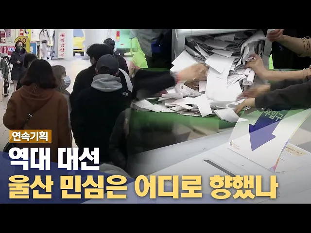 ◀ANC▶20대 대선을 100여 일 앞두고 울산지역의 이슈를 돌아보는 시간입니다.오늘은 지난 대선에서울산 민심이 어디로 향했는지, 그리고 앞으로 민심의 향방을 어떨지, 이용주 기자가 짚어봤습니다.◀VCR▶역대 4번의 대선을 돌아보면울산은 보수 정당 지지세가강한 지역으로 분류됩니다.CG1) 노무현 전 대통령이 역전승...