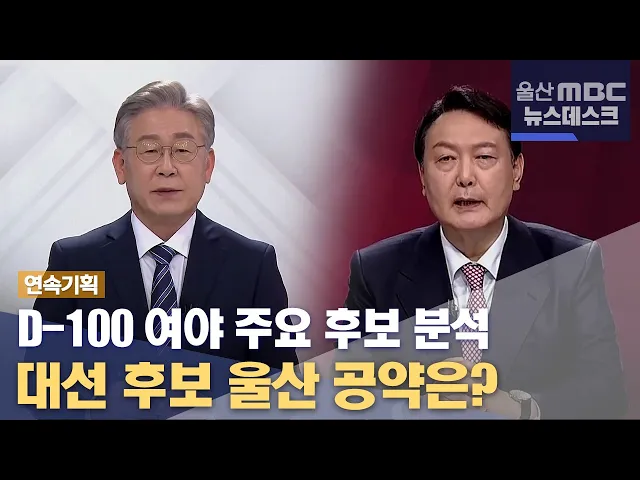 ◀ANC▶제20대 대통령 선거가 오늘로(11/29) 100일 앞으로 다가왔습니다.울산MBC는 여야 주요 대선 후보를분석하는 기획 뉴스를 연속 보도합니다. 오늘은 그 첫 순서로 여야 대선 후보들이 꺼낸울산 공약을 비교했습니다. 이용주 기자◀VCR▶=========================(CG) 부울경 메가시티 / '이구동성'================...
