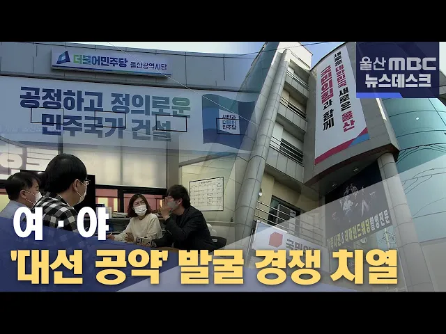 ◀ANC▶제 20대 대통령 선거가5개월여 앞으로 다가온 가운데여야 정당이 울산지역 대선 공약 개발에 안간힘을 쓰고 있습니다. 어느 때보다 대선 공약의 중요성이 커지면서 더불어민주당은 정책엑스포, 국민의힘은 공약개발단을 출범시키는 등 지역 공약 발굴 과정에도 경쟁이 치열합니다. 이용주 기자.◀VCR▶◀END▶더...