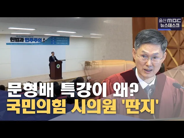 [앵커]울산시교육청이 문형배 전 헌법재판관 초청 특강을 열려고 하자 시의회가 정치색을 거론하며 철회를 요구하고 나섰습니다. 지난주 시의회에서 있었던 일인데, 파장이 일파만파 커지며 시의원들에 대한 규탄은 물론 헌법불복 논란까지 일고 나섰습니다. 조창래 기자가 취재했습니다. [리포트]울산시교육청은 오는 25일...