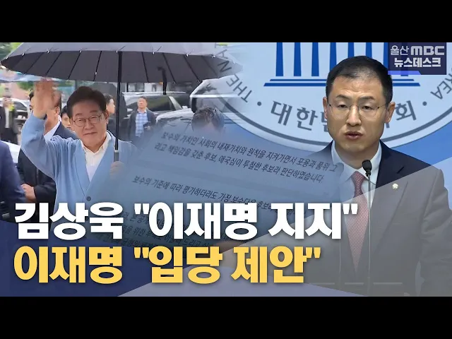 [앵커]국민의힘을 탈당한 김상욱 의원이 민주당 이재명 후보 지지를 선언했습니다. 더불어민주당 이재명 후보는 곧바로 입당 제안으로 화답했는데, 김상욱 의원의 민주당행이 기정사실화되는 분위기입니다. 조창래 기자가 취재했습니다. [리포트]무소속 김상욱 의원이 더불어민주당 이재명 대선 후보 공식 지지를 의사를 밝...