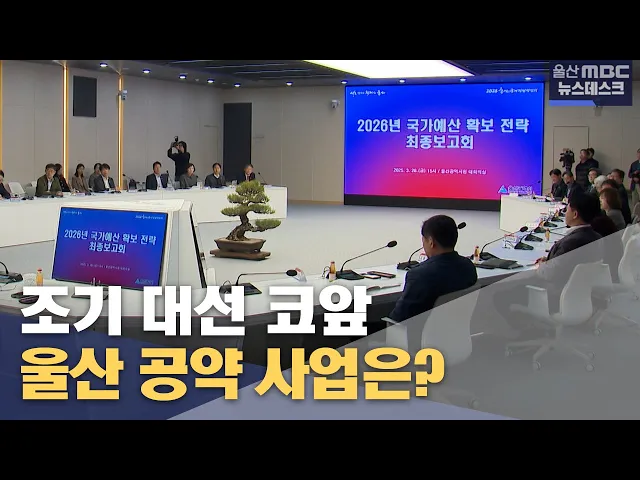 [ 앵 커 ]대통령 선거일 다가오면서 각 정당과 후보들이 지역별 대선 공약 발굴에 착수했는데요. 울산시는 지속적인 도시 발전을 위해 필요한 현안 사업과 신규 사업을 포함한 대선 공약 건의안을 이달 안에 확정하기로 했습니다. 최지호 기자입니다.[ 리포트 ]20대 대선에서 당시 국민의힘 윤석열 후보는 울산지역 공약으...