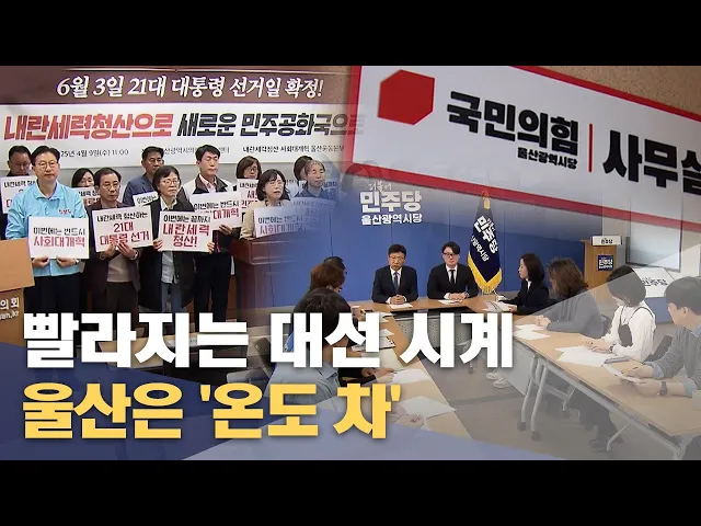 [앵커]6월 3일 대통령 선거일이 확정되면서 대선 시계가 빠르게 돌아가고 있습니다. 대권 주자들이 속속 출사표를 던지면서 대선 레이스도 막을 올리고 있는데요. 울산에서는 여야가 극명한 온도 차를 보이고 있습니다. 최지호 기자. [리포트]대통령 파면으로 조기 대선 국면이 펼쳐지면서 대권주자들의 출마 선언이 잇따르...