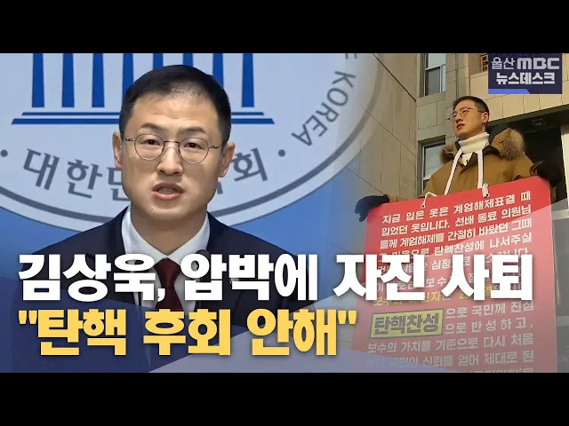 윤석열 대통령 탄핵에 찬성하며 당내에서 반발에 시달려온 국민의힘 김상욱 의원이 울산시당위원장직에서 자진 사퇴했습니다. 오늘(2/14) 국회에서 기자회견을 연 김 의원은 헌정질서를 무너뜨리려는 대통령을 탄핵하는 것은 국회의원의 최소한의 당위이자 자격이라며 후회하지 않는다고 밝혔습니다. 다만 시당위원장직은 ...
