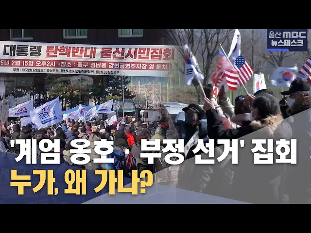 지난 주말 울산에서도 윤석열 대통령 탄핵 찬반 집회가 잇따라 열렸습니다. 태화강 둔치에서 열린 대통령 탄핵 반대 집회에는 경찰 추산 6천 명의 시민이 집결했으며 국민의힘 김기현, 박성민 의원과 함께 윤상현, 나경원 의원 등이 참가해 부정 선거 음모론과 대통령 석방을 주장했습니다. 롯데백화점 광장에서 열린 탄핵 ...