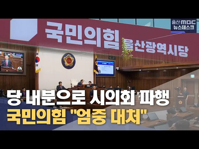 [앵커]법적 다툼으로까지 번진 유례없는 의회 파행의 원인은 모두 국민의힘 당내 내분입니다.비난 여론이 커지는 상황에서 국민의힘 울산시당이 엄정 대처하겠다고 나섰는데 얼마나 효과가 있을지 의문입니다. 조창래 기잡니다. [리포트]하나의 의장실에 3명의 의원이 출근을 하며 고성이 오가는 촌극이 벌어진 울산시의회....