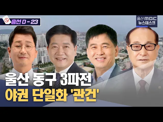 울산시민정치회의는 오늘(3/19) 기자회견을 열고 북구에 이어 동구도 야권 단일화가 이뤄져야 한다고 주장했습니다. 이들은 북구에서 진보당 윤종오 후보와 무소속 이상헌 후보가 중앙당 합의가 끝난 상황에서 경선에 합의했다며, 동구도 야권 승리를 위해 단일화가 시급하다고 강조했습니다. 동구는 현재 민주당 김태선 후...