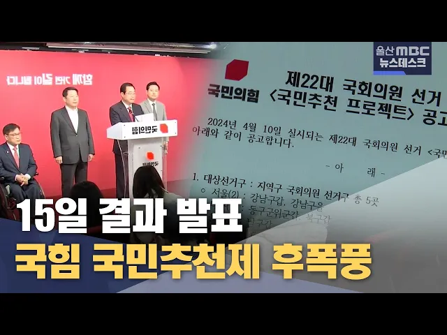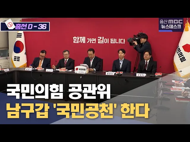 국민의힘 공천관리위원회는 오늘(3/5) 울산 남구갑 선거구에 국민공천을 실시하기로 했습니다.국민공천은 피선거권이 있는 사람이라면 누구나 도전할 수 있고 제3자도 추천할 수 있도록 해 진짜 국민 대표를 뽑는 새로운 방식이라고 공관위는 설명했습니다.국민공천은 신청 서류를 간소화하고 온라인으로 오는 8일과 9일 이...