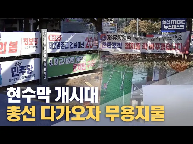 ◀ 앵 커 ▶ 지난해 울산시가 전국에서 두번째로 정당 현수막을 전용 게시대에 부착하도록 조례를 개정했습니다. 시행 초반에는 잘 지켜지는가 싶더니, 총선이 가까워지자 조례 위반 현수막이 우후죽순으로 등장하고 있습니다. 각 정당들의 변명도 가지각색입니다. 정인곤 기자 ◀ 리포트 ▶ 울산 중구의 한 교차로. 가로수와 ...