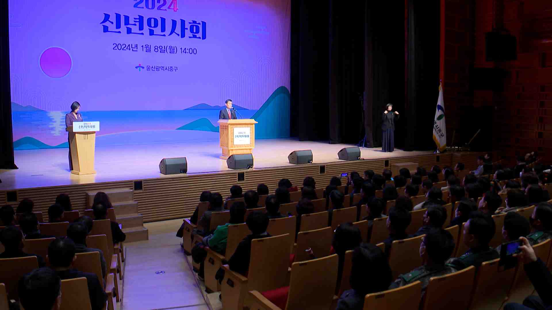 중구가 오늘(1/8) 오후 누구나 살고 싶은 종갓집 중구를 주제로 중구문화의전당에서 신년인사회를 개최했습니다. 김영길 중구청장과 김두겸 울산시장 등 500여명이 참석한 신년인사회에서 중구는 교육과 복지 관광 등 5가지 역점 추진과제를 공개했습니다. 중구는 앞으로도 주민 삶의 질 향상과 정주 여건 개선을 목표로 누...