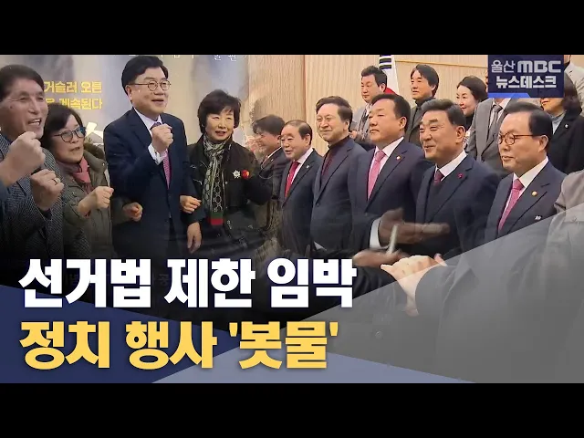 신년인사회나 출판기념회가 총선 90일 전인 오는 11일 이전까지만 허용됨에 따라 예비후보들이 주최하는 행사가 잇따르고 있습니다.국민의힘 박성민 의원과 서범수 의원은 오늘(1/5) 중구청과 서울주문화센터에서 각각 의정보고회와 출판기념회를 열었습니다.내일(1/6)은 이채익 의원이 문수체육관에서 출판기념회를, 더불...