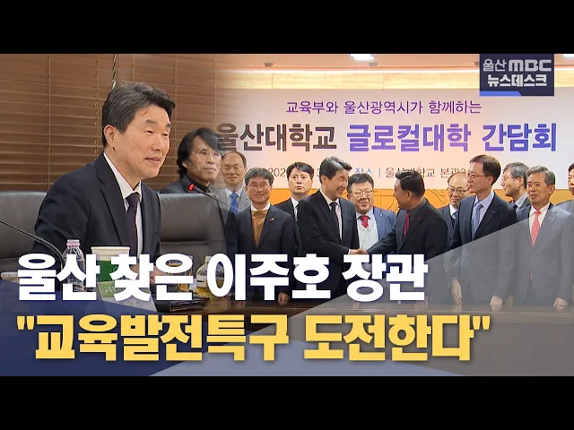 ◀ 앵 커 ▶ 이주호 부총리 겸 교육부 장관이 글로컬대학 사업에 최종 선정된 울산대학교를 찾았습니다. 이 자리에서 찾아가는 교육발전특구 설명회도 열렸는데, 울산시와 울산시교육청은 특구 선정에 도전하겠다고 공식 선언했습니다. 이용주 기자. ◀ 리포트 ▶ 이주호 교육부장관이 정부의 교육 개혁 정책인 '교육발전특구'...