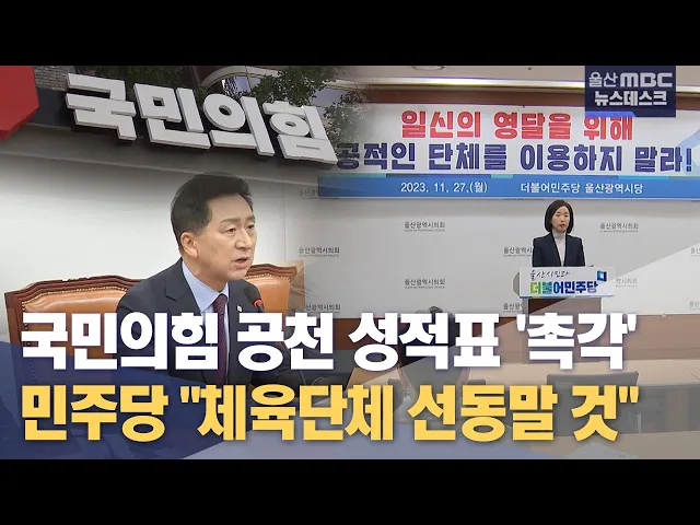 더불어민주당 울산시당은 오늘(11/27) 기자회견을 열고 김기현 국회의원의 울산 출마를 지지한 김철욱 울산시체육회장이 정치적 중립 의무를 위반했다고 주장했습니다.민주당은 대한체육회 정관에 민선 체육단체장의 정치적 중립 규정이 명시돼 있다며 김 회장이 정치적 행위에 대해 후속 조치를 검토하겠다고 밝혔습니다....