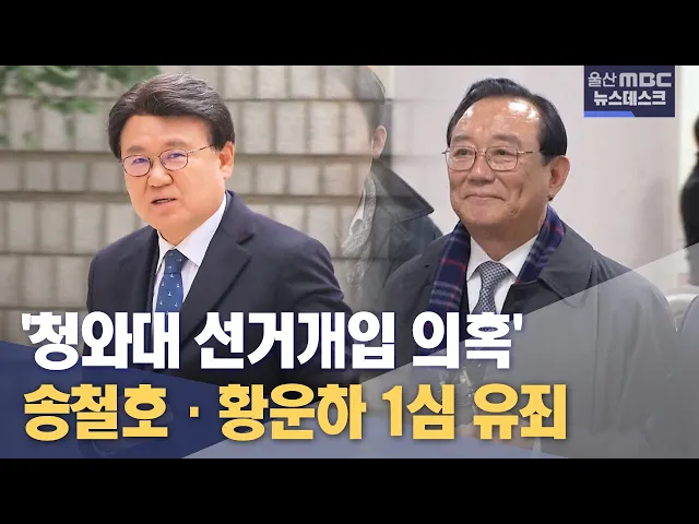 [앵커]지난 2018년 지방선거 과정에서 청와대 개입이 있었다는 의혹을 받아 온 송철호 전 울산시장과 황운하 국회의원이 1심 재판에서 유죄를 선고받았습니다.송철호 전 시장이 상대 후보에 대한 수사를 당시 경찰청장이던 황운하 의원에게 요청했고, 실제로 수사가 이뤄진 만큼 선거에 영향을 미쳤다고 판단한 겁니다.당사...