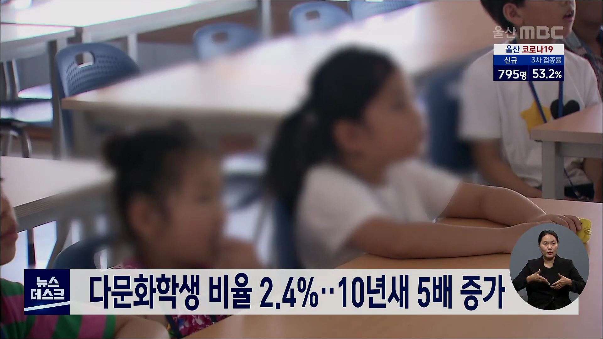 다문화 학생 비율이 10년 전에 비해 5배 이상 증가한 것으로 나타났습니다. 울산시교육청에 따르면 지난해 말 현재 다문화 학생 수는 3천542명으로 전체의 2.4%를 차지했으며 이는 2012년 719명, 0.4%에 비해 5배 이상 늘어난 것입니다. 부모 출신국가별로는 베트남, 중국, 필리핀 순을 보였고 82%가 국제결혼으로 국내에서...