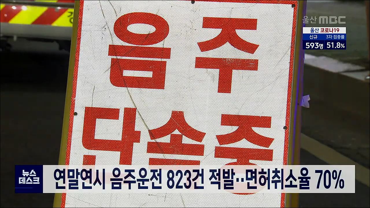 연말연시 음주운전 823건 적발..면허취소율 70%